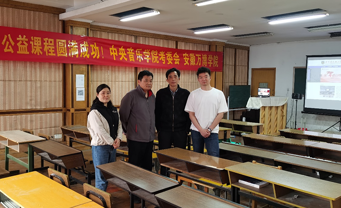 2021年4月16日晚,中央音乐学院考级委员会面向音乐类专业高校学生量身打造了提升就业综合能力网络公益培训项目课程在我校音乐教育学院表演与语言室开展,音乐教育学院沈春雷院长主持了此次公益课的开班仪式,音乐教研室主任吴乾康老师,中央音乐学院安徽考级办朱光成老师、宫玲老师和我校2019级音乐表演专业的学生参加了此次开班仪式。