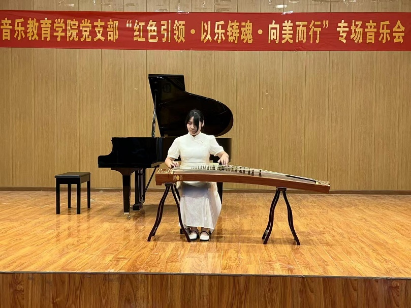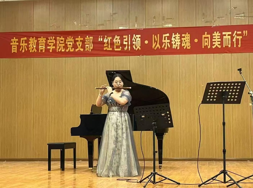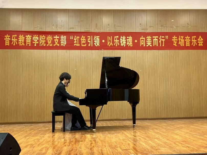 6月4日晚,由音乐教育学院党支部主办的“红色引领·以乐铸魂·向美而行”专场音乐会在音乐教育学院实训中心音乐厅隆重举行。本次音乐会由音乐教研室音乐表演专业倾力承办,以一场融汇中西、贯通古今的艺术盛宴,深情诠释了音乐艺术在培根铸魂、立德树人中的独特力量。