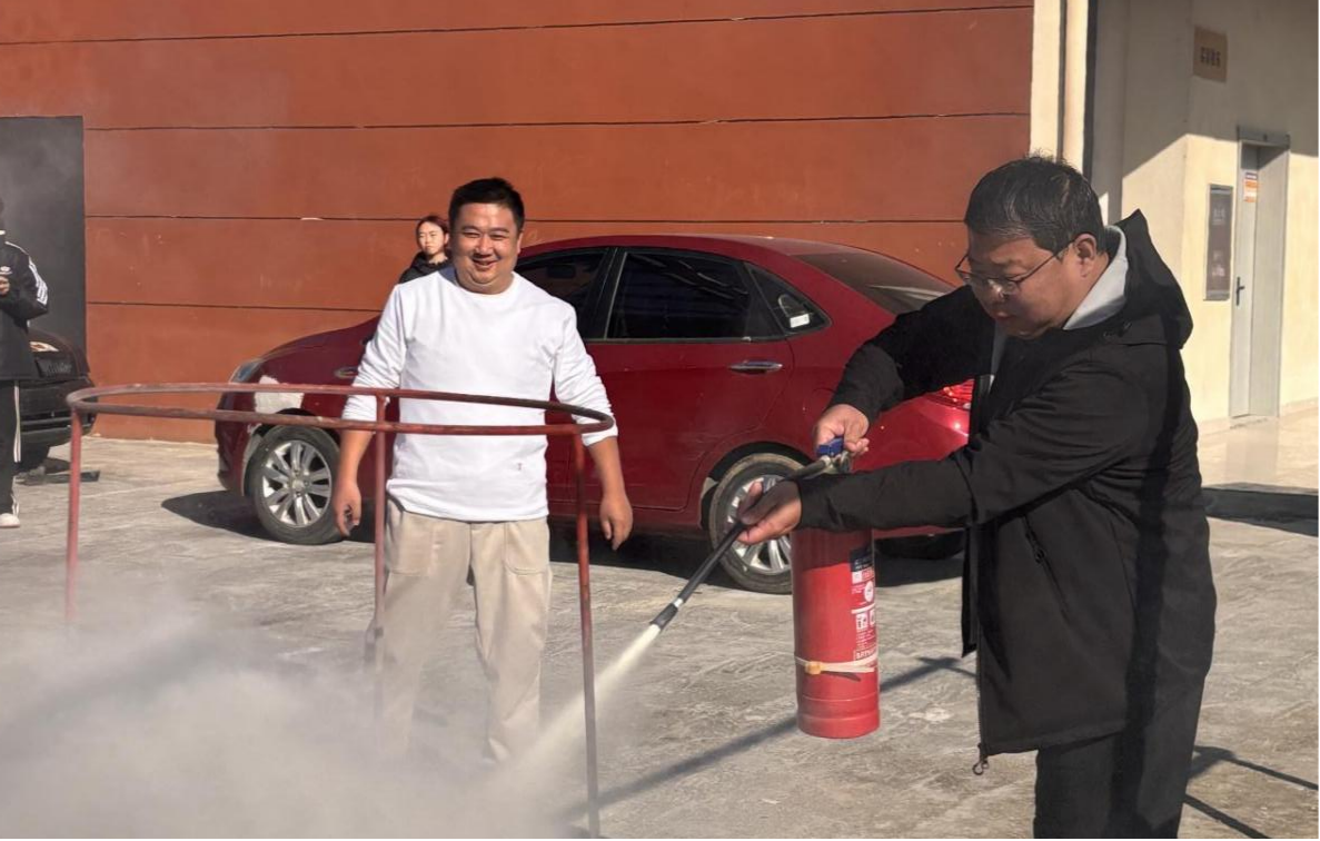 随着模拟烟雾升起,参与演练人员按照分工,报警、组织人员疏散、利用灭火器进行扑救,过程有序,措施得当。在消防器材实操环节,各实训室主任在专业人员的指导下,分别使用干粉灭火器、二氧化碳灭火器以及消防栓等设备,亲身体验了“提、拔、握、压”的灭火全过程,确保了在面对真实火情时能够做到沉着冷静、有效处置。
