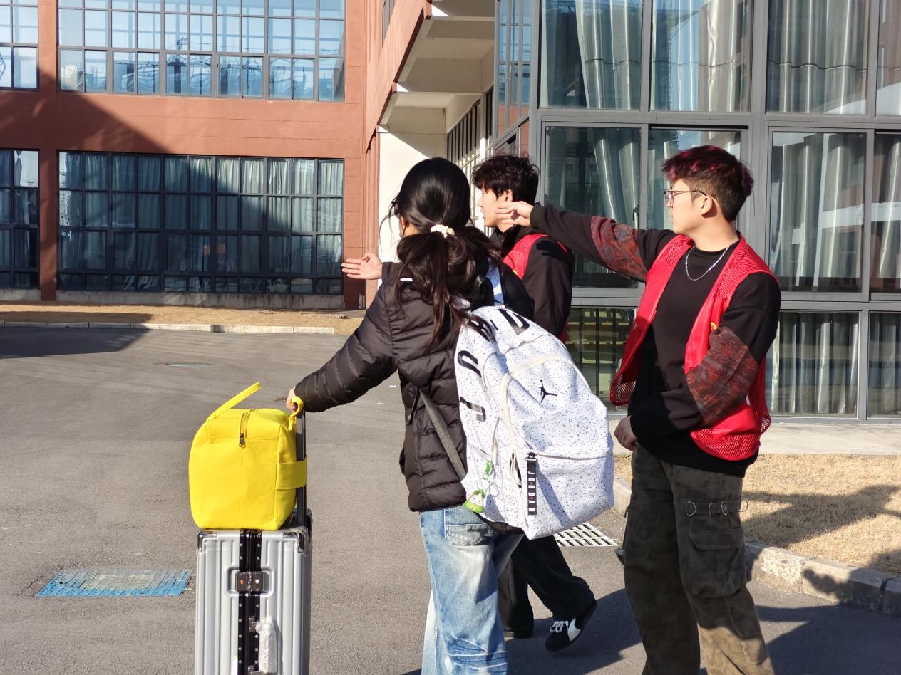 活动期间,志愿者们以高度的热情与细致的服务坚守岗位。在乘车点,他们耐心指引同学们有序乘坐前往各车站的路线车辆,有效提升了乘车效率。面对携带大件或多件行李的同学,志愿者们主动上前伸出援手,协助搬运、安置行李,以实际行动传递关怀,切实缓解了同学们旅途中的奔波与疲惫。一个个忙碌的身影,一次次暖心的相助,共同汇聚成校园里一道亮丽的风景线,让冬日的回家路充满了温暖与安心。