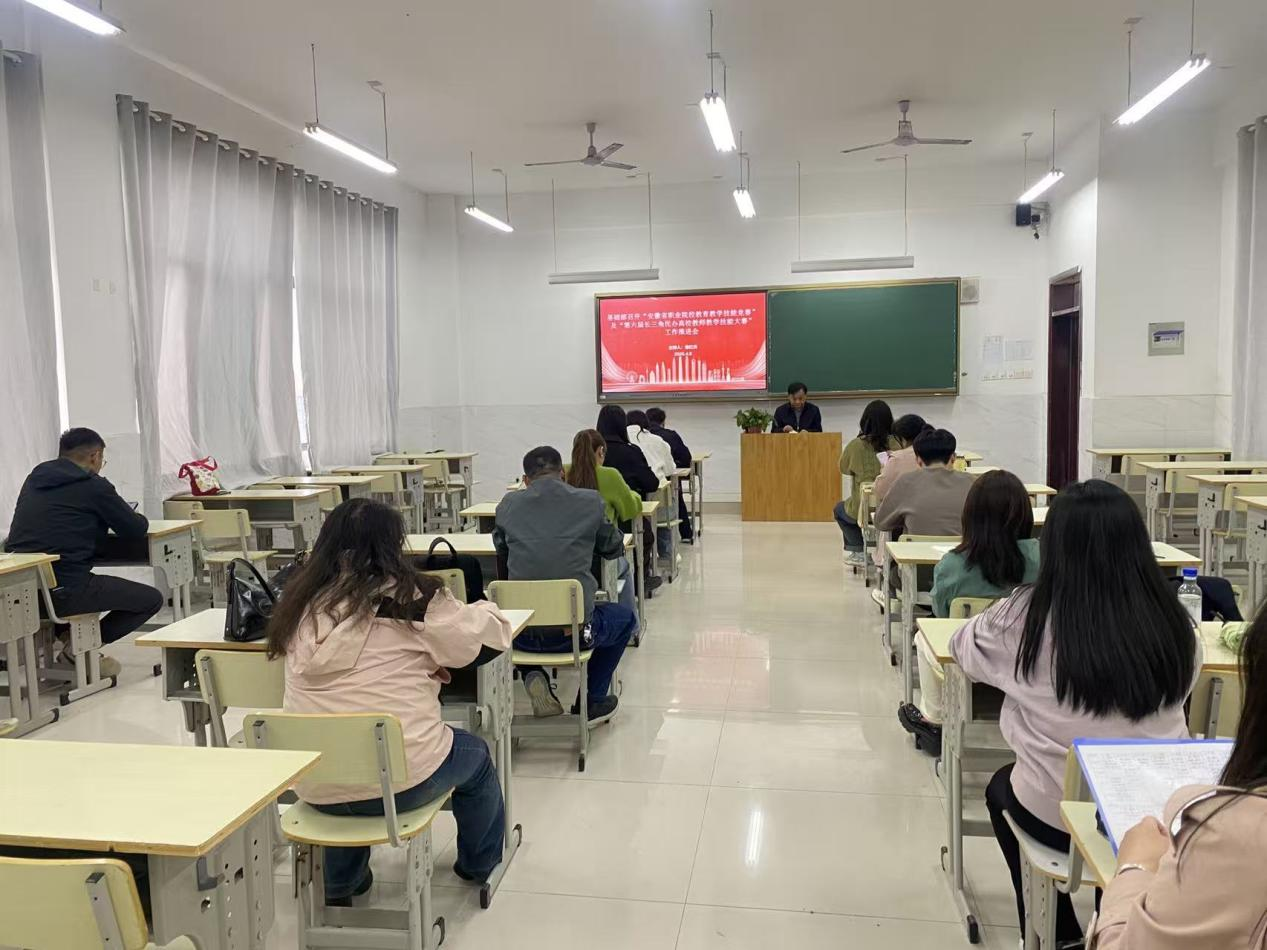 会上,徐红兵首先带领全体人员学习了《2026年安徽省职业院校教育教学技能竞赛方案》和《安徽省教育厅关于举办第六届长三角民办高校教师教学技能大赛省级选拔赛的通知》,进一步明确了备赛的时间节点与目标任务。他强调,两项大赛是提升教师教学能力、展示学校办学水平的重要平台,也是推动教学改革、促进教师专业成长的有力抓手。通过集中学习,要求各参赛团队深刻领会文件精神,对标最高标准、最严要求,提前谋划、周密准备,为高质量完成参赛材料打下坚实基础。
