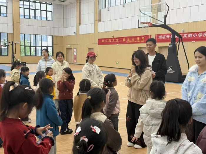 为深入学习贯彻习近平新时代中国特色社会主义思想,充分发挥基层党组织战斗堡垒作用、团组织思想引领功能和青年团员先锋模范作用,4月22日下午,智能信息学院党支部、团总支部联合寿县第三实验小学党支部、阳光半岛社区党支部共同开展“以爱为伴,童行有我”主题志愿服务活动,以“党建红”引领“青春红”,为孩子们带来了一场别开生面的趣味课堂。